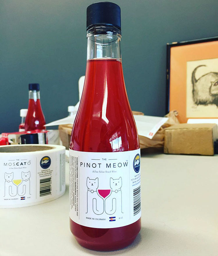 La empresa señala en su página web: «¡¿Por qué beber solo?! Hemos trabajado intensamente para desarrollar un vino sin alcohol a base de hierba gatera sólo para sus amigos felinos peludos… que es una mezcla satisfactoria para los gatos de todas las edades«.