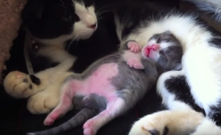 Para hacer las cosas aún más tiernas, mamá mira a su bebé durante todo el proceso. Ella no parece estar preocupada por el frenético movimiento de su pequeño. ¡Parece como si ella también estuviera tratando de averiguar qué es lo que el gatito está soñando!