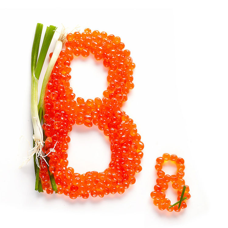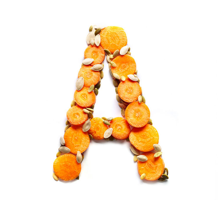 En su proyecto fotográfico llamado Vitamins (Vitaminas), la fotógrafa Julia Malanuk visualiza diversas vitaminas y minerales elaborando las letras con los que son conocidas, con los alimentos que son ricos en esos nutrientes. Para la vitamina A, la letra A se representa con zanahorias y nueces. El magnesio (Mg) está representado por avellanas y café.