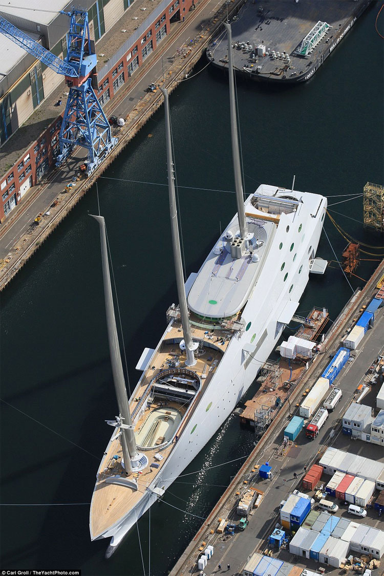 El resto de sus medidas son descomunales. Tiene una longitud de 142 metros (el mayor velero del mundo), una altura en su mástil más alto de 91 metros, ocho plantas y una sala de observación bajo el agua.